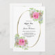 Une élégante invitation au thé à la floraison rose encadrée d'or.