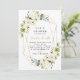 Cet élégant Bridal Shower Invitation présente des fleurs blanches d'aquarelle peintes à la main, de l'hydrangée, de l'or et une belle végétation.