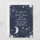 Cette élégante invitation à la douche nuptiale capture la beauté enchanteresse d'un thème céleste avec un design sophistiqué de lune de croissant. La lune au croissant, ornée de détails complexes en feuille d'or, flotte gracieusement contre un arrière - plan marin ou bleu nuit profond qui reflète le ciel nocturne serein. Autour de la lune sont délicates, chatoyantes étoiles d'or, ajoutant une touche de magie et d'élégance. Le texte de l'invitation est présenté dans une combinaison raffinée de calligraphie moderne et de polices serif classiques, estampillées en feuille d'or pour compléter le design céleste. Les détails de la douche nuptiale, y compris le nom, la date, l'heure et le lieu de la mariée, sont élégamment arrangés, assurant que toutes les informations importantes se démarquent. L'invitation est imprimée sur des cartons texturés de haute qualité, ce qui ajoute une touche de luxe et améliore la richesse du design. La carte peut inclure des éléments supplémentaires comme une bordure décorative ou un subtil motif étoilé sur le dos, complétant le thème céleste. Cette invitation est parfaite pour une douche nuptiale qui embrasse la mystique et l'élégance d'un thème céleste, donnant le ton d'une célébration magique et mémorable.