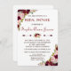 Élégante Invitation à la douche nuptiale d'automne rouge de marsala bordeaux. Elégante suite d'invitation avec un charmant coin marsala floral, flèches du coeur avec un bouquet fleuri comme diviseur, belles polices. Utilisez l'outil Personnaliser pour ajouter vos informations. Pour plus d'informations, veuillez visiter ma Suite d'Invitation Florale Elégante Marsala.