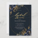 Elégante fleurs bleu marine avec feuilles or sur arrière - plan bleu marine. Belle invitation qui peut être customisée avec votre nom.Sélectionnez le bouton "personnaliser" pour changer le style, la couleur et la taille de la police.