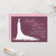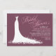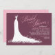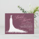 Élégante invitation à la douche nuptiale pour les futurs mariés élégants dispose d'une police de script de calligraphie ornée et de robe mariage fluide. Les détails des fleurs, des fleurs et des papillons font ressortir la robe éthérée. Couleurs design blanc, rose rose et rouge bordeaux.
