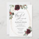Cette invitation à la douche nuptiale de Noël est parfaite pour une douche nuptiale de vacances élégante. Le design présente de belles fleurs d'aquarelle blanche et bordeaux avec une végétation de pins, de baies saintes et d'eucalyptus. Il s'agit d'une palette de couleurs parfaite pour un mariage d'hiver. Faites cette invitation vous-même en incluant vos détails de douche. Pour plus de personnalisation, utilisez l'outil de conception avancée pour modifier ce modèle.