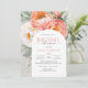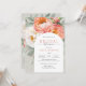 Avec élégance et charme, cette belle invitation à la douche nuptiale fleurie dispose d'un beau bouquet de pêche corallienne et de pivoines blanches en ivoire, d'eucalyptus et de verdure sur un arrière - plan vert sauge neutre. Des appareillages de type tendance et un cadre en forme d'arc rendent votre texte pop avec style. Personnalisez le modèle texte facile à utiliser avec vos détails d'événement. Bonne nouvelle ! Vous pouvez commander cette invitation en téléchargement numérique sans papier pour envoyer un courriel à vos destinataires en plus des invitations imprimées de haute qualité.