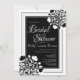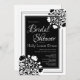 Design élégant et classique noir et blanc. Un motif floral contrastant et un cadre simple rendent cette invitation attrayante, donnant un texte blanc immaculé. Les invitations et les cartes sont disponibles dans une sélection d'options de forme (arêtes arrondies, échalotes, etc.) et dans un choix de textures de papier. Les styles de police, les couleurs et la taille sont personnalisables. Vous pouvez trouver d'autres conceptions avec de nombreux produits de coordination dans notre magasin, y compris des invitations, enregistrer la date et les cartes rsvp, étiquettes de remerciement, et plus encore.