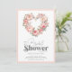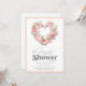 De magnifiques fleurs se forment en coeur pour une élégante invitation à la douche nuptiale. Les fleurs de la couronne botanique sont des pivoines, des roses et des clématites avec une jolie verdure. La typographie élégante ajoute à la belle apparence. Voir la coordination des articles dans notre boutique, Enchanted Finch.