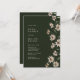 Invitation Élégante Flore Vert Douche Nuptiale Invitation. Cette élégante invitation à la douche nuptiale présente de belles aquarelles peintes à la main, des fleurs brunes et boho chic sur un arrière - plan vert chasseur foncé. Le texte est crème. L'arrière de l'invitation comprend la même illustration. Les articles correspondants sont dans la collection Mariage floral foncé vert & bronze.