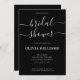 Élégant Script Black and White Modern Bridal Shower Invitation. Invitation votre famille et vos amis avec ce modèle de douche nuptiale mariage moderne minimaliste. Personnalisez cette invitation élégante et élégante avec les noms, le lieu, la date et l'heure.