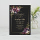 Invitation vos amis et votre famille pour assister à votre douche nuptiale avec cette élégante invitation. L'invitation présente une belle décoration florale aux tons violets et bordeaux sur un arrière - plan noir. Vous pouvez ajouter sans effort tous les détails nécessaires au texte personnalisable. Pour rendre vos invitations uniques, vous pouvez choisir parmi différents types de papier et styles d'angle. En outre, vous avez la possibilité de télécharger l'invitation.