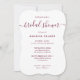 Elégante invitation à la douche nuptiale bordeaux. Personnalisez facilement en ligne. Objets correspondants disponibles pour compléter cette invitation de douche de nuptiale bordeaux avec une police de script moderne.
