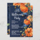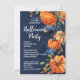Elégante et classe aquarelle style art halloween invitation avec citrouilles orange sur arrière - plan bleu marine foncé. Invités Invitations à un halloween, automne moisson citrouille sculpture ou soirée costume avec cette belle invitation imprimée moderne et personnalisée. Des graphismes personnalisés et personnalisés avec vos détails personnalisés. Idéal pour une soirée élégante pour adultes, famille ou ados, ou pour un tour ou un régal soirée.