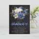 Ambiance pour votre soirée avec cette élégante invitation à la fête d'halloween adulte, avec un arrière - plan rustique en damier, un crâne vintage, des flores d'aquarelle bleues et un feuillage botanique en faux or. Tout le texte est entièrement personnalisable à l'aide du modèle fourni, ce qui facilite la personnalisation de votre événement unique. Parfait pour ceux qui recherchent une ambiance raffinée mais éffrayante. Faites de votre fête un moment inoubliable avec ce design époustouflant.