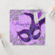 Belle invitation à la fête mascarade violet masque rose et violet. Cette élégante invitation à la mascarade violet et rose est facilement customisée pour votre événement en choisissant simplement le bouton "Customisez-le !" pour commencer à ajouter vos détails d'événement, le style de police, la taille et la couleur de police et le libellé. Veuillez noter que tous les modèles de cartes et d'invitations que vous trouverez sur Zazzle sont des graphiques imprimés sans bijoux, arcs, surélevés, gaufrés, ou des pièces ou pièces ajoutées.