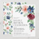 Célébrez dans le style avec notre superbe invitation d'anniversaire double à l'aquarelle florale ! Ce design élégant met en valeur de belles fleurs peintes à la main dans un mélange délicat de rose, de bleu et de bordeaux, complété par un feuillage vert luxuriant. Ajoutez simplement vos coordonnées à ce modèle d'anniversaire chic pour une touche personnelle. Laissez cette invitation donner le ton parfait pour votre célébration conjointe d'anniversaire.