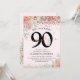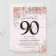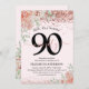 Invitation Élégante Fleur rose & Parties scintillant 90ème an