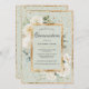 Un arrière-plan de couleur vert sauge pastel orné d'or luxueux avec des fleurs de couleur ivoire et neutre décrit cette invitation Quinceanera. Si chic et sophistiqué. Si élégant. J'ai apprécié créer ce design pour vous. Zazzle garantit un service client et une satisfaction à 100%.