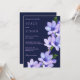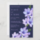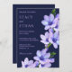 Éblouissez vos invités avec cette élégante faire-part de mariage fleurie avec de belles fleurs violettes et une typographie moderne contre un arrière - plan bleu nuit. Ajoutez simplement les détails de votre événement sur ce modèle facile à utiliser pour en faire une invitation unique.