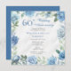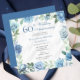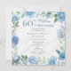 Invitation Élégante Florale Bleue 60ème fête Mariage
