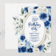 Invitation Elégante Florale Bleue 95e fête d'anniversaire