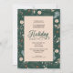 Cette simple invitation de Noël de bureau présente un élégant script moderne et avec une frontière de verdure hivernale boho apparaissant dans des tans et des tétons doux sur un arrière - plan turquoise foncé.