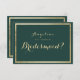 Serez-vous ma demoiselle d'honneur? Elégante faire-part de mariage Bridesmaid en vert de forêt moderne et en faux or.Cette invitation aux cartes Bridesmaid en or vert de luxe.Cette invitation chic de mariage glam est parfaite pour toute fille glam classe et sophistiquée. Ce design est parfait pour l'événement de fête tendance et élégant .Design avec votre propre message et informations. Tous les dessins sont imprimés.