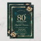 Invitation Elégante Frame Or Flower Stars Green 80th