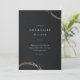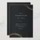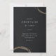 Un design élégant d'invitation Happy Hour par Stacey Meacham avec un arrière - plan textuel noir et des bagues à cocktails en or. Parfait pour les événements professionnels ou personnels.