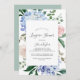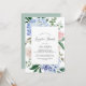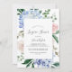 Cette élégante invitation à la douche en lingerie blanche hydrangée bleue est parfaite pour une douche nuptiale printemps ou été. Le design floral classique est composé d'hydrangées bleu poudre douce, agrémentées de fleurs roses neutres et de feuilles verts.
