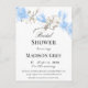 Design élégant et doux d'invitation de douche nuptiale avec aquarelle Magnolia fleurie art en blanc et bleu. Personnalisez en modifiant les détails du texte.
