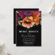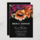 Cette élégante invitation à la douche nuptiale à fleurs rose, orange et moody foncé présente un riche ensemble de graphismes floraux, dont des tournesols et des mamans sur un arrière - plan noir, et une élégante calligraphie manuscrite. Facile à personnaliser avec vos propres informations, et la couleur arrière - plan est également personnalisable. Ces invitations à la douche nuptiale sont parfaites pour la mariée qui planifie un mariage boho, un mariage de jardin, un mariage vintage, un mariage romantique, un mariage floral, ou pour toute mariée qui aime les tons bijoux et les fleurs. Facile à personnaliser avec vos propres informations, et la couleur arrière - plan est également personnalisable. Conception de T.K. Goforth.