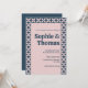 Invités Invitations à votre fête rétro-chic avec notre Faire-part de mariage rétro géométrique du milieu du siècle de Blush Navy. Doté d'un motif géométrique captivant dans une palette de couleurs sophistiquée, ce design allie charme vintage et élégance moderne. Parfait pour les couples à la recherche d'une ambiance mariage intemporelle et branchée. Explorez l'ensemble de la collection pour la coordination de la papeterie pour compléter votre look mariage.