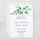 Un élégant Faire-part de mariage floral marine et blanc conçu avec accent floral blanc et bleu et texte de marine sur un arrière - plan blanc. Pour personnaliser, il vous suffit d'insérer tous vos détails dans notre modèle facile, en remplaçant l'exemple de texte.