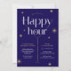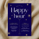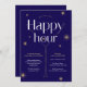 Créez des invitations de l'entreprise Happy Hour pour votre événement de réseautage, soirée d'appréciation ou fête d'entreprise en utilisant ce design invitation bleu marine et or. Doté d'effets faux or sur un arrière - plan de marine avec des polices serif élégantes, un verre à cocktails et de subtils détails scintillants. Cet invitation d'événement d'entreprise peut être utilisé pour vos événements de team-building / moral des employés, réunions de réseautage, rencontres post-conférence et séminaires et plus encore!