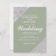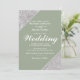 Elégante parties scintillant moderne argent sur sauge vert avec Faire-part de mariage de script blanc