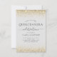 Parties scintillant Gold et White Faux Sparkle Girly Quinceanera Les invitations à la fête de célébration incluent une belle et élégante typographie de scénario pour la célébration spéciale du 15e anniversaire.