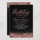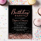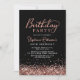 Elégante Parties scintillant Rose or et Black 40th Birthday Invitation. Faites de votre célébration une expérience inoubliable grâce à cette Parties scintillant d'or Rose moderne et élégante Invitation d'anniversaire. Doté d'une bordure de parties scintillant en or rose rose et d'un arrière - plan noir audacieux, ce design met en valeur une police de calligraphie en forme de queue de cheval lettrée à la main pour une touche féminine et sophistiquée. Parfait pour les fêtes marquantes, cette invitation polyvalente peut être customisée à tout âge, que ce soit en sweet sixteen, 18ème, 21ème, 30ème, 40ème, 50ème, 60ème, 70ème ou au-delà ! Vous planifiez une fête coordonnée ? Contactez-moi pour obtenir des articles correspondants ou une assistance personnalisée.