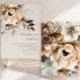 Invitation Elégante Peach Grey Aquarelle Brown Florale Mariag