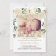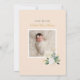 Cette invitation de cérémonie de baptême et de célébration élégante pour une petite fille comporte une photo frontale personnalisable encadrée par une belle bordure florale aquarelle de roses peintes, de ranunculus et de verdure en blanc, crème, or et vert, rehaussée d'une croix dorée. Tout le texte peut être entièrement personnalisé pour votre événement. Le verso présente un fond pêche rose pastel avec une deuxième photo de nouveau-né personnalisable, un accent floral et un texte de script "Dieu vous bénisse". Conseil photo : recadrez les photos en forme carrée avant de les télécharger.