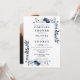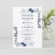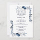 Cette élégante invitation de fête de couple fleurie bleu marine et blanc peut être personnalisée avec vos informations en typographie moderne et une photo spéciale au verso. Conçue par Thisisnotme©