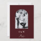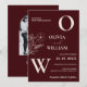 Célébrez votre histoire d'amour avec cette invitation de mariage formelle élégante florale burgundy ivoire, un design qui capture parfaitement l'essence d'un mariage classique de luxe. Ce modèle présente une belle mise en page de photo encadrée par des pivoines et des roses florales burgundy à l'aquarelle dramatique et lunatique. La palette riche burgundy et rose blush, accentuée par une verdure profonde, crée un look décadent idéal pour un mariage d'automne, tandis que le fond ivoire croquant et la calligraphie moderne maintiennent une sensation traditionnelle et classique.