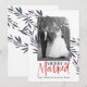 Annoncez votre bonheur des mariés avec un élégant carte photo vertical "Merry & Married". Doté d'une photo en noir et blanc intemporelle agrémentée de gracieuses bordures florales, c'est une belle façon de partager vos premières vacances en couple.