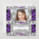 Invitation Elégante Photo Purple Zebra Silver Birthday Party