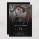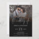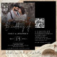 Photo élégante QR Code Script Mariage noir. Avec un code QR à votre site Web mariage au dos afin que vos invités puissent RSVP et voir tous les détails en ligne sans avoir besoin de pièces séparées. Votre code QR sera généré automatiquement pour mettre à jour l'exemple de code dans la conception, lorsque vous changez simplement l'exemple d'URL dans le modèle avec votre propre URL de site mariage. Une typographie informelle en blanc pour l'en-tête principal du Mariage De compléter le reste du texte que vous pouvez facilement personnaliser. Remplacez l'exemple de photo par votre préféré. Il est derrière un dégradé noir pour se fondre avec l'arrière - plan noir.