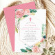 Célébrez le baptême de votre petite fille avec cette élégante invitation avec un design de magnifiques pivoines roses. Fleurs pastel douces et verdure encadrent les détails du baptême, mis en valeur par une subtile croix. Parfait pour une cérémonie sereine et sophistiquée, cette invitation ajoute une touche de grâce et de beauté à votre événement spécial. Customisez avec les détails de votre événement pour créer un faire-part unique et personnel.