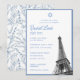 Ces invitations élégantes pour Bat Mitzvah avec tour Eiffel bleue comprennent l'option de personnaliser complètement tous les titres et textes. Le recto comporte du texte bleu avec une photo de la tour Eiffel et le verso présente un délicat motif floral français toile de fond bleu. Entrez dans l'outil de conception Zazzle pour des personnalisations de conception supplémentaires.