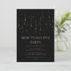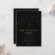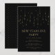 Invitation élégante pour la soirée du Nouvel An en noir et or. Le design est minimaliste et élégant et présente des lumières de Noël suspendues. Invitez amis et famille à une fête de fin d'année moderne avec cette invitation pour le Nouvel An qui peut être personnalisée avec l'inclusion des détails de votre soirée.