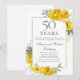 Modèle d'invitation élégant pour le 50e anniversaire de mariage avec un cadre doré et deux arrangements de roses jaunes. Tout le texte est modifiable.