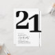 Voici une invitation pour les 21 ans en noir et blanc qui allie avec élégance l'ancienne police sérif du chiffre '21' à un modèle personnalisable moderne et convivial. Cette invitation n'est pas juste une carte, c'est un souvenir précieux pour marquer le cap des 21 ans.