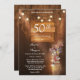 Cette carte d'invitation comprend un fond en bois rustique orné de guirlandes lumineuses et un simple mais beau pot rempli de fleurs fraîches.