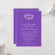 Le beau pourpre a coloré l'invitation d'anniversaire de Quinceanera parfaite pour votre célébration d'anniversaire de special de princesses 15ème. Une jolie couronne de scintillement argentée décore le dessus de cette invitation pourpre. Personnalisez le texte blanc, pour votre célébration d'anniversaire de filles 15ème.